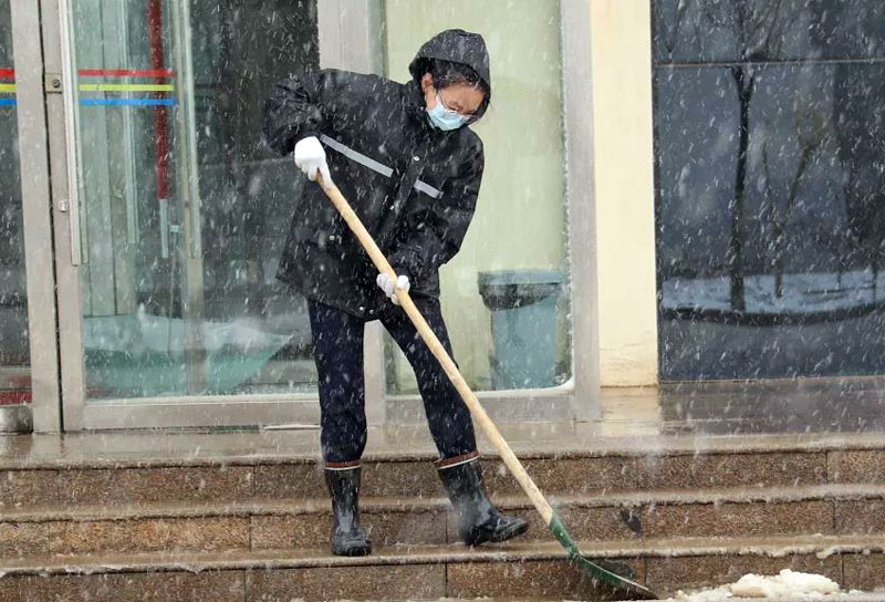 为保障出行安全,泰兴物业内蒙区域公司长城六矿项目部工作人员不惧寒冷,铲冰除雪,任由雪花飘落在身上,忙碌的身影成了矿区一道靓丽的风景线。(王宁)