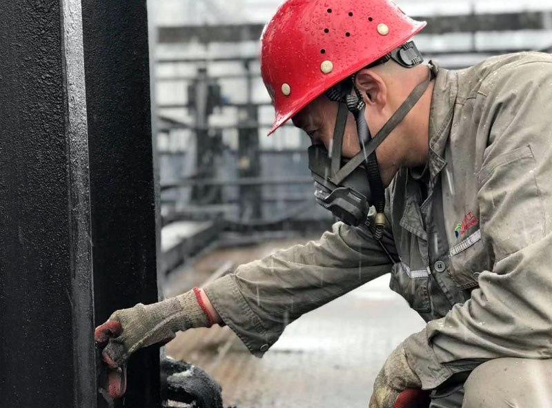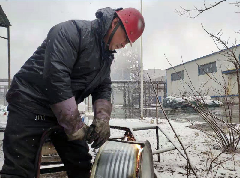 恒坤化工化产车间维修班副班长姬忠喜正在进行切割作业。(赵峰)