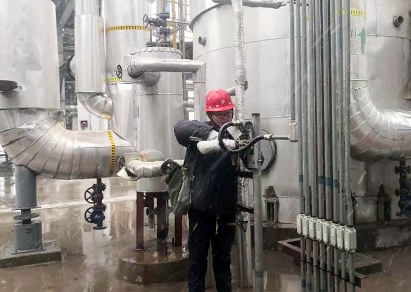 恒坤化工LNG车间生产一线的职工每隔1个小时对现场进行一周期巡检,并打卡记录设备运行情况。(黄有英)
