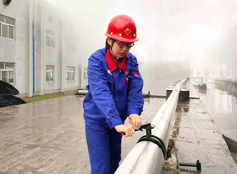恒坤化工保运车间操作工娄云开启补水阀门,保障生产系统稳定运行。(焦统莉)