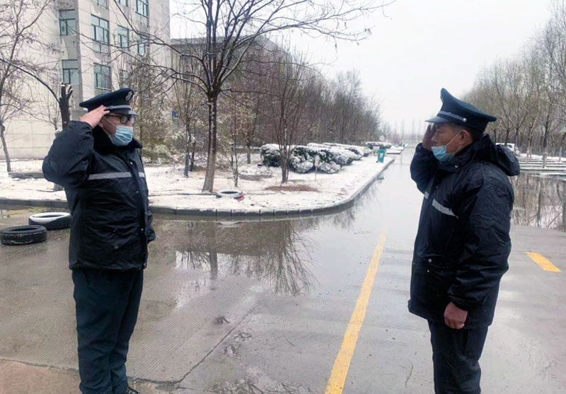 长城五矿在矿区主要路口、路段增派保卫人员,精心做好交通疏导和安全提醒工作。风雪中夹杂着的丝丝冰雨渗透了警服,但他们依然坚守在岗位,为过往车辆和行人保驾护航。过往职工纷纷竖起大拇指,看到他们浴“雪”奋战的身影内心真暖,他们就是我们最安全的“护身符”。(侯会龙 彭昊)