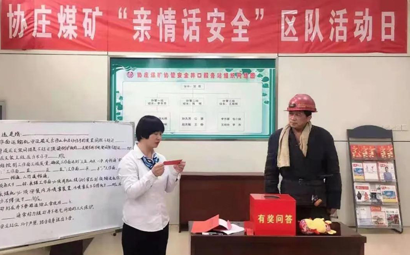 协庄煤矿安全管理通过实践引导融入人本思想,创新安全管理方式,形成了刚性监督、柔性督导日常管理规范,让制度督促全员真抓实干,让安全问候语时刻暖在职工心。“小聂,有啥难处说出来,大家帮你解决,但是在井下工作千万不能大意啊。”女工协管员公慧正在细心开导工区违章人员小聂。