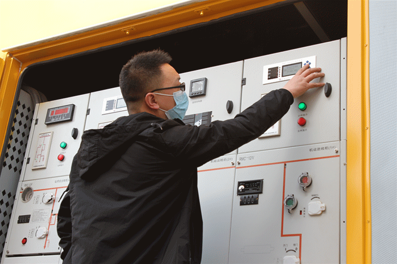 (聘请专业人员为大家演示启动应急电源车发电机组)