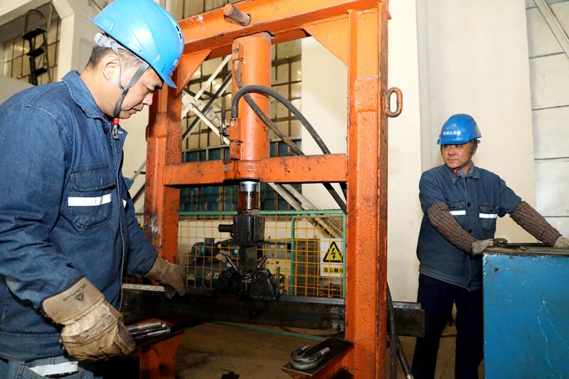 “在现场操作时,需要两人密切配合,每天仅能加工90余件U型螺栓,加工效率很低。我感觉可以借鉴液压推动油泵的原理,从冷压成型这个方向做一些文章。”该单位铆工车间班组长朱开明结合现场操作实际,提出解决方案,并得到讨论人员的一直认可。