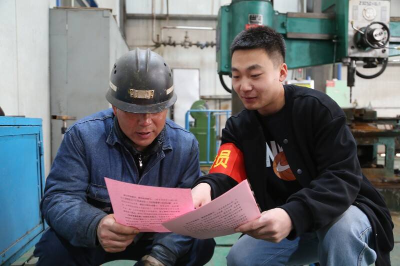 (宣讲员在车间开展全民国家安全教育日科普活动)