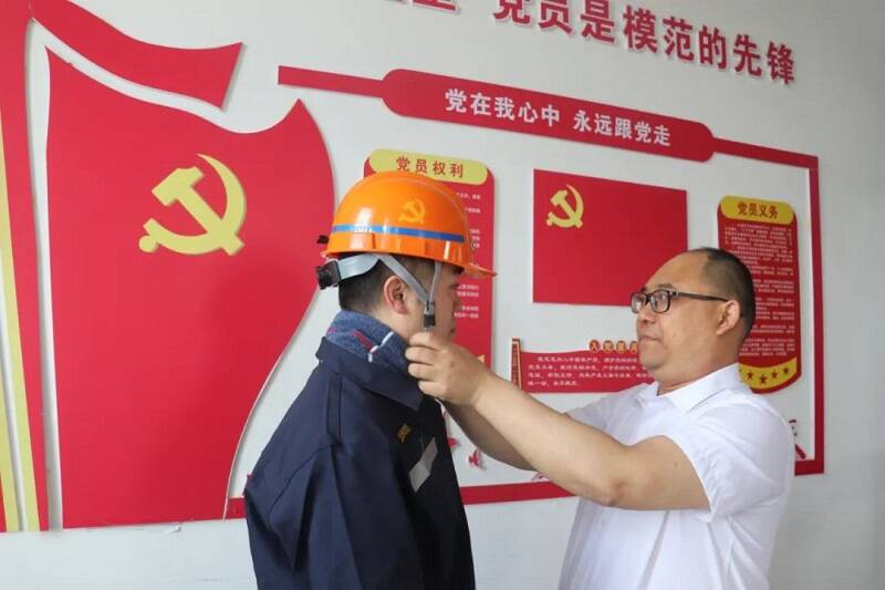(颁授“党徽标识”安全帽)