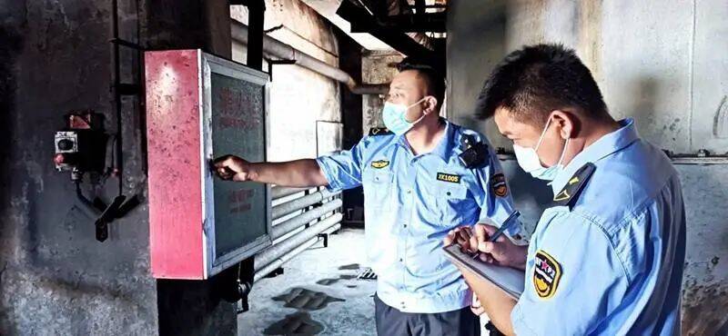 (消防队人员在检查消防器材使用情况)