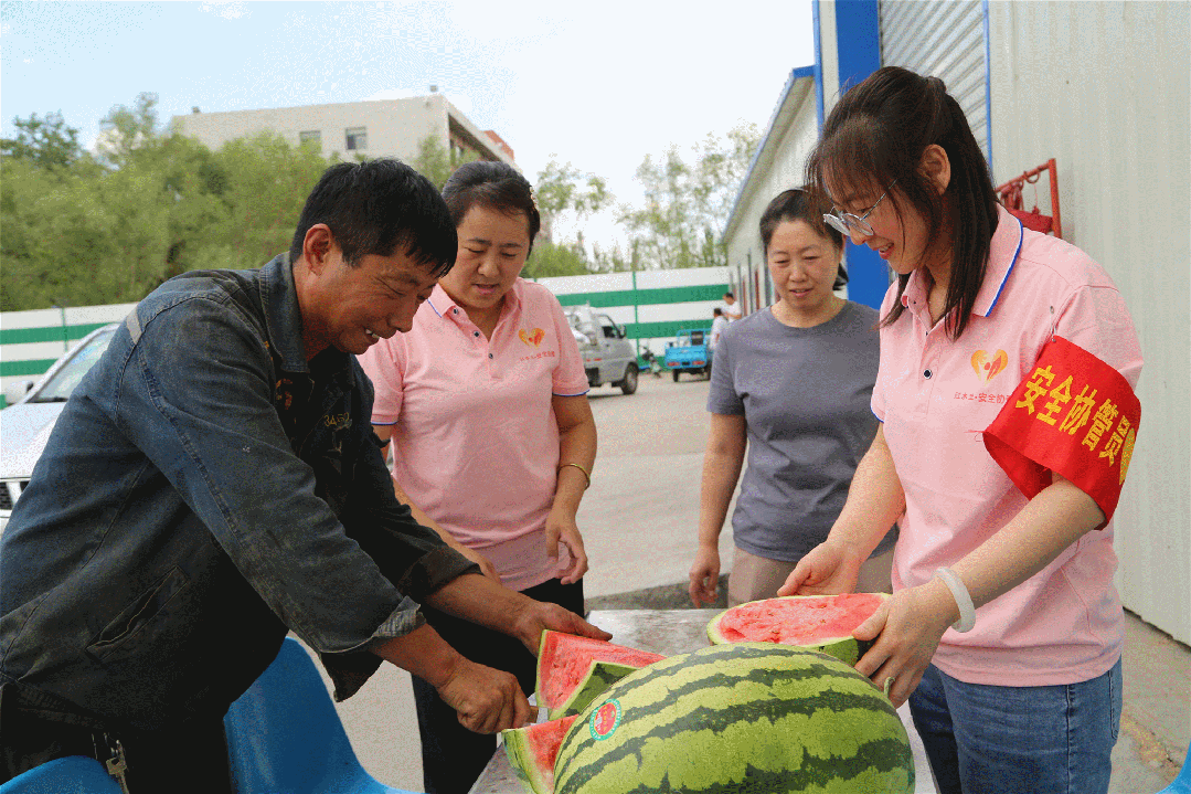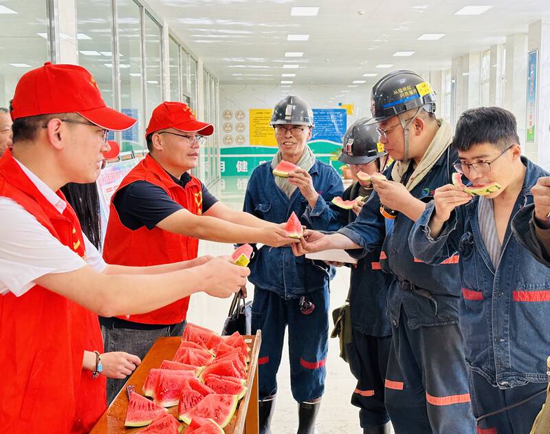 与此同时,该公司志愿服务小分队常态化深入到井口候车室、区队车间岗点进行关爱慰问,将切好的西瓜送到职工手中。并叮嘱他们要合理饮食、注意防暑,下井按章作业。大家表示,一定立足岗位,克服酷暑高温季节影响,将组织的关心关爱化为工作动力,为矿井安全生产争做新贡献。