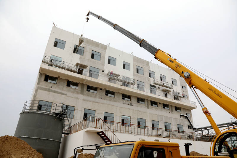 (水处理蒸发结晶车间外墙粉刷作业)