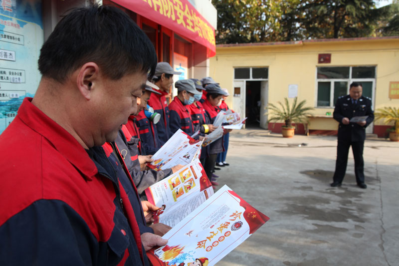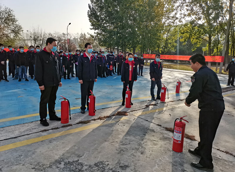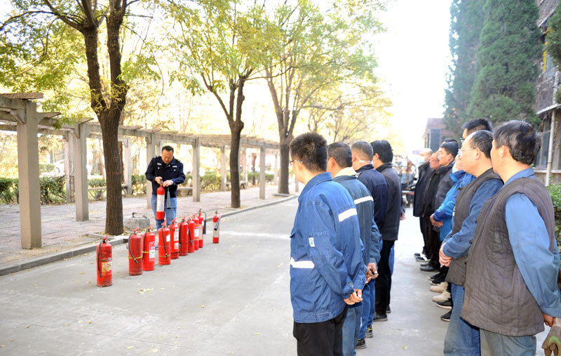 新巨龙公司保卫部专业人员讲解灭火器材使用方法及要领。(公致 摄)