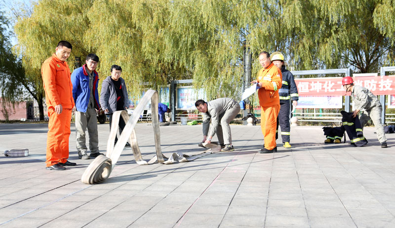 内蒙能源恒坤化工组织公司消防员开展消防技能大比武活动。(尹作玲 摄)