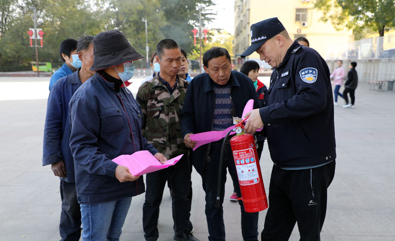 华丰煤矿进行消防知识宣传和消防器材使用演示。(刘衍柱 摄)