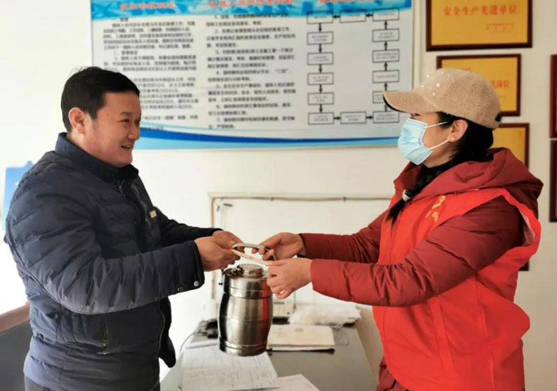志愿者每到一个区队,都为职工人员送上“爱心水饺”和节日祝福,并叮嘱在决战安全年的最后关头,要牢记安全责任,绷紧安全弦,心无旁骛地安全生产。