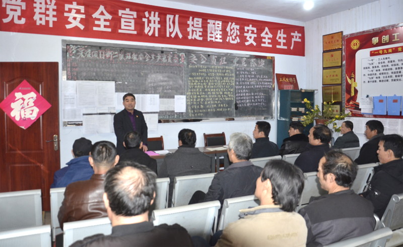为强化职工安全思想意识,确保完成全年安全生产目标任务,进入12月份,万祥矿业成立了由党群工作部、工会、团委、社会管理中心组成的安全宣讲队深入基层区队开展安全宣讲进基层活动,充分利用班前、班后会,深入采掘机运通各区队开展安全宣教,通过安全提醒、讲述“安全,我最难忘的一件事”、讲解近期事故案例、发放“安全倡议书”等形式,与职工面对面,话家常、唠安全,为职工拧紧“安全阀”,敲响“安全钟”,受到广大职工一致好评。