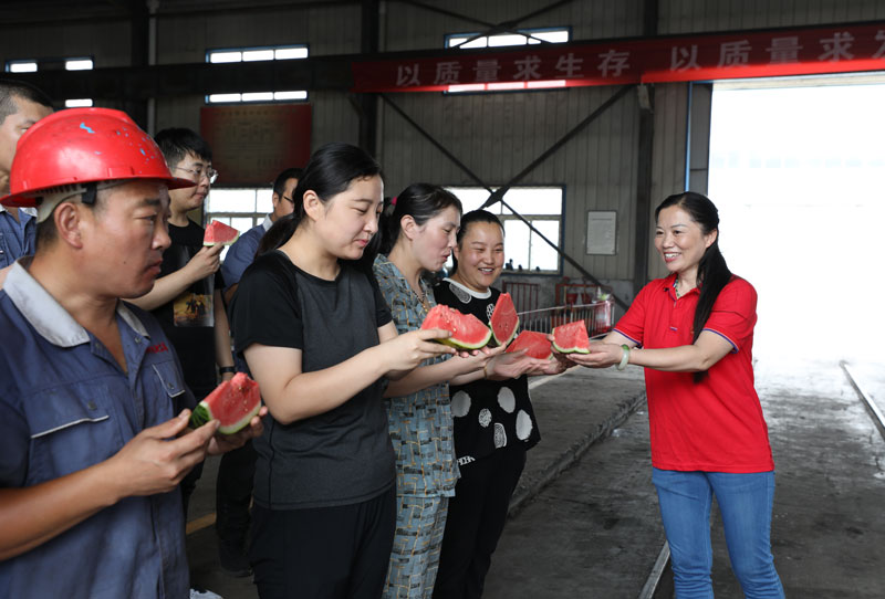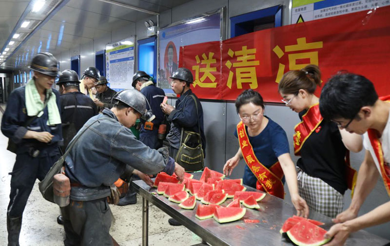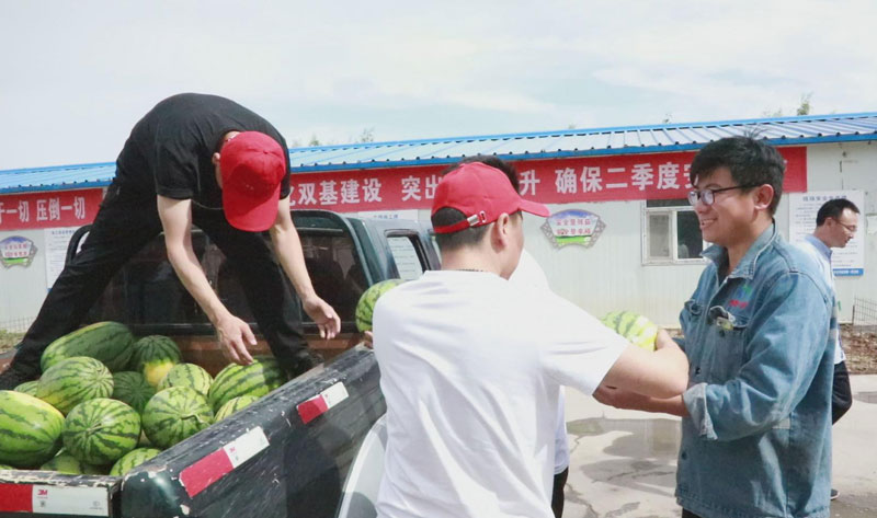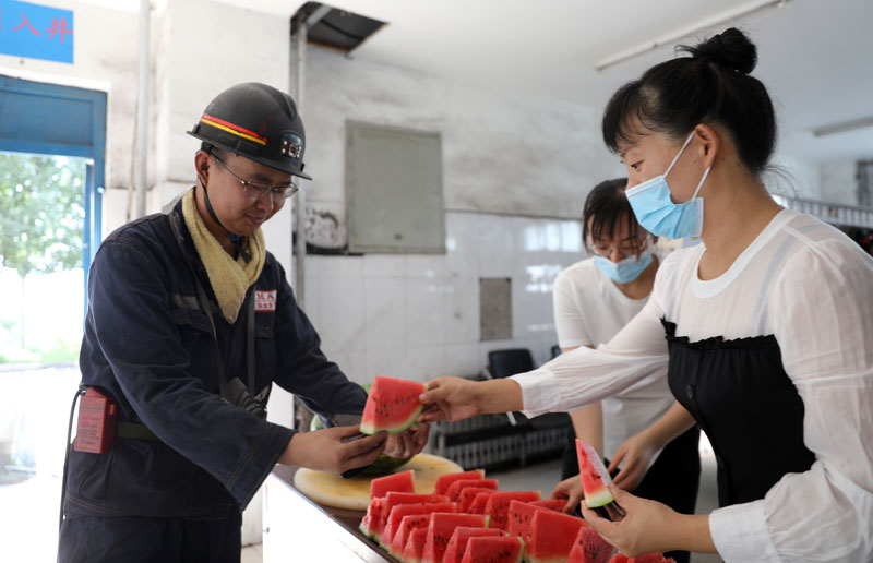 伊犁一矿党委倡导在离职工最近的地方提供最暖心的服务,特别采购了5000公斤当地盛产的沙地西瓜,由志愿者逐一送到基建工地、井口、地磅房等一线岗位职工手中,让职工在高温天气能吃上清凉解渴的西瓜。(张虹)