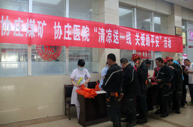 协庄煤矿工会联合协庄医院开展“清凉送一线关爱助平安”活动,为奋战在一线的职工送去清凉、健康与祝福。(张魁)