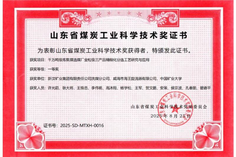 坚持创新驱动发展,注重产学研深度融合。该公司与高等院校、设备厂家合作开展《千万吨级炼焦煤选煤厂全粒级三产品精细化分选工艺研究与应用》科技项目研究,该项目系统性融合了公司在煤炭精细化分选领域取得的关键技术突破与显著成效,科技成果经中国煤炭工业协会鉴定为国际先进水平,荣获山东省煤炭工业协会科学技术一等奖和中国煤炭工业协会科学技术三等奖。