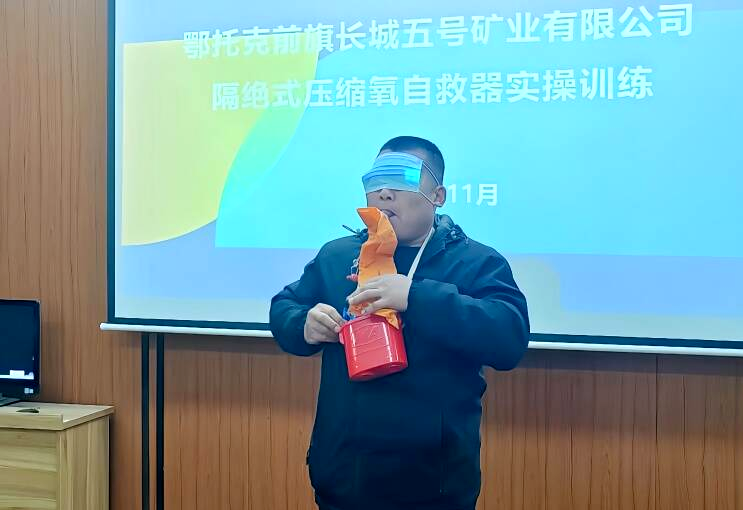 “报告,我已完成自救器盲戴操作!”近日,长城五矿自救器“盲戴”全员大演练现场,职工李亮的报告声铿锵有力。模拟黑暗环境中,他指尖翻飞完成规范操作的身影,正是矿井强化应急能力、筑牢安全防线的生动缩影。