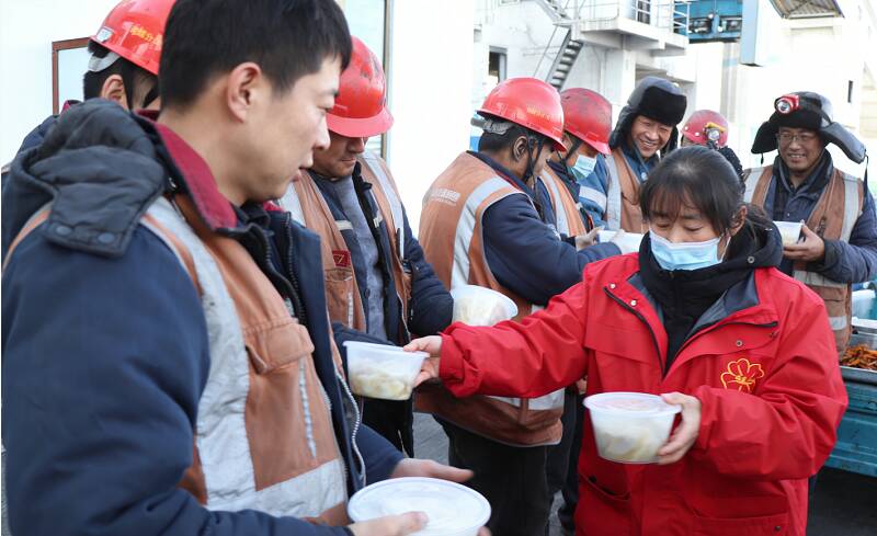 经过数小时的忙碌,60斤饱含心意的手工水饺新鲜出炉。协管员们兵分数路,第一时间将水饺送到职工们手中。副井口,协管员们搭起了“爱心饺子驿站”,姜汤的暖香与饺子的鲜香交织弥漫,女工协管员们麻利地为上下井的职工盛饺子、递姜汤,热情地招呼着。职工们接过温热的碗具,一口姜汤下肚,暖意瞬间从喉咙淌遍全身;咬上一口饱满的饺子,疲惫与寒意一扫而空, 心中的暖意不断升腾。这份暖心关怀不仅驱散了冬日严寒,更让职工们提振了工作信心,时刻绷紧安全弦,牢记规范作业的要求。